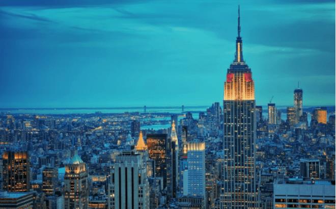 帝国大厦是美国有名的标志性景点,这座大厦的86层能够看到整个纽约的全景。如果在最高点能看到美国4个州的部分景观,也是世界第一高楼。