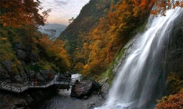 神龙谷里面有郁郁葱葱的植物,非富从山顶直流而下,空气清新,夏天的天气十分凉爽,走在里面给人一种心旷神怡的感觉。