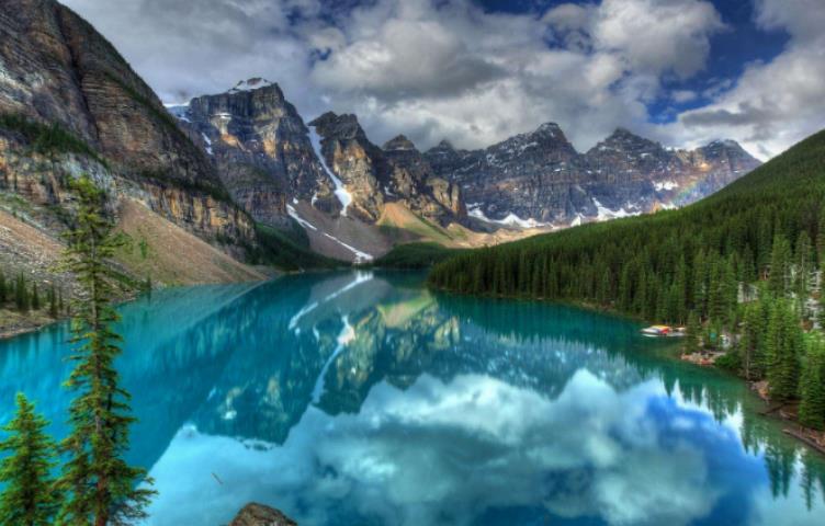 洛基山脉的自然景色十分迷人,真理有着不一样的大自然风光,山尖上有皑皑的白雪,山谷下有清清的流水,还有茂密的丛林,就像一副画一样漂亮。