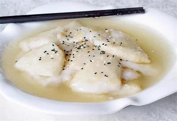 水糍粑是把糯米饭蒸熟之后用醋捶打,然后做成小圆团包上,豆馅,芝麻,桂花,糖等馅料,再放到蒸笼里面蒸熟,吃起来特别丝滑。
