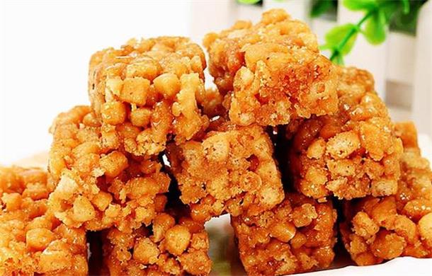 松花糖是桂林特产,是用糯米粉做成面团,然后切成黄豆大小放在油锅里面炸,炸好之后再裹上糖浆放进模具里面冷却制作成型吃起来,舒软不粘牙是很多人小时候的回忆。