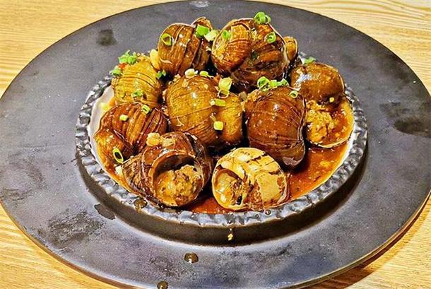 桂林阳朔的田螺个头特别大是远近闻名的,吃起来味道也非常鲜美,田螺酿是先把田螺里面的肉掏出来,再加上猪肉和香菜调料剁碎,然后再塞进田螺壳里面制作而成。