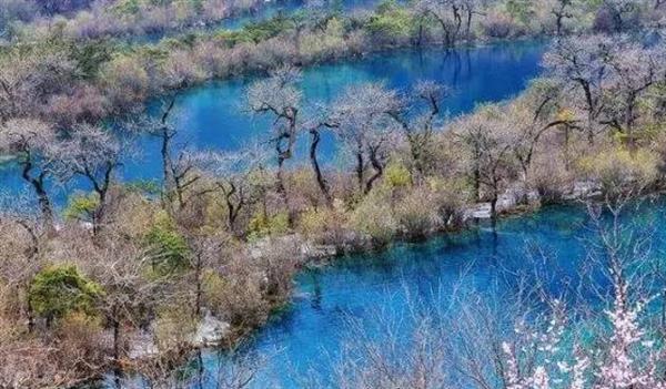 九寨沟的春天景色也非常美。相比于北方来说,九寨沟的冬天并不是那么萧瑟,所以到了春天的时候也是生机盎然的景色,绿树青翠,河水碧蓝,到处都是迷人的景色。