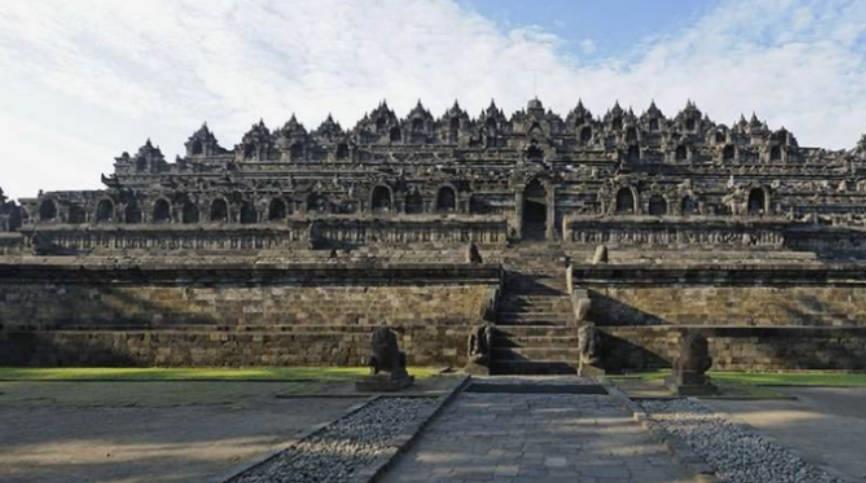印度尼西亚的波罗浮屠寺庙是下联特拉王朝统治者兴建的,后来由于火山爆发塔,群下沉被覆盖在热带雨林当中,是在19世纪的时候被清理出来,得以重见天日。