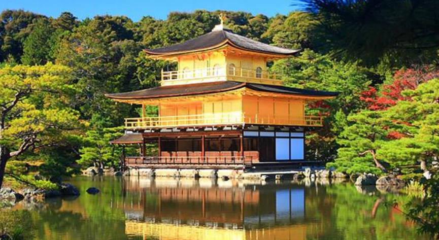 金阁寺是日本京都非常有名的一座寺庙,这座寺庙是1397年修建的,但是在1950年被放火烧毁,直到1955年重建。