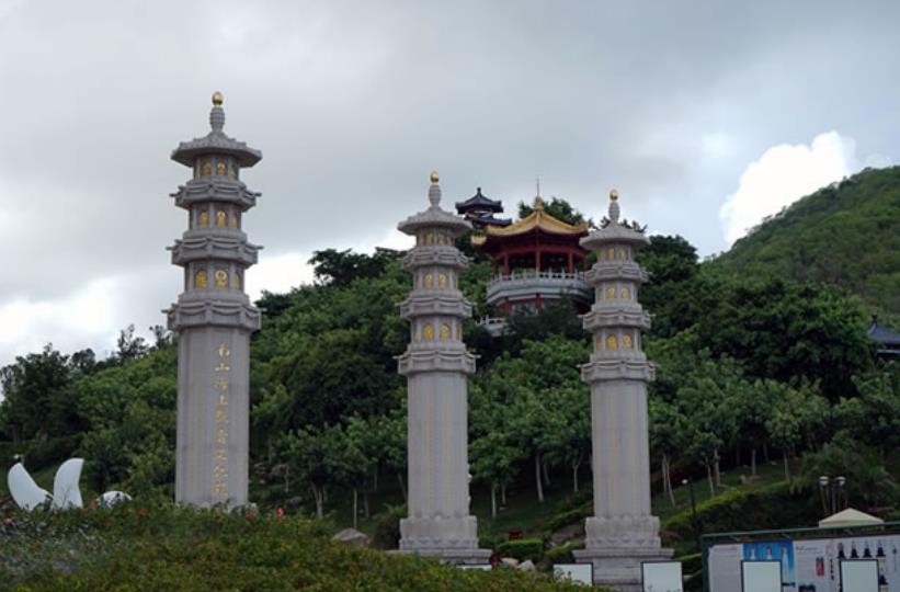 南山文化旅游区在三亚南山。这个旅游区一共分为三大主题公园,其中主要的建筑有南山寺,南海观音佛像观音文化苑,天竺圣迹佛名胜景观苑,十方塔林与归根园等景点。