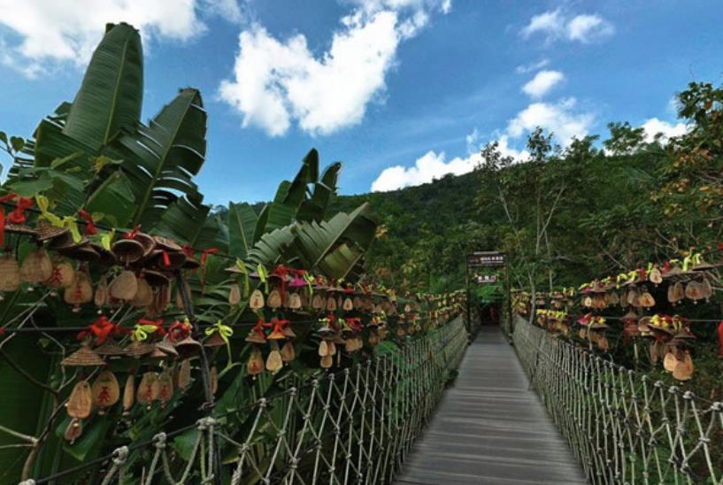 椰田古寨景区在海南省陵水县和著名的景区吴支洲岛南湾猴岛等风景区隔海相望,是海南省新兴的展示民族文化的窗口。