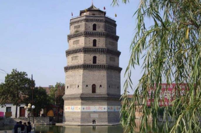 唐塔也叫观音,浮屠是原来的观音寺塔。塔周围,绿水环绕,岸边绿林成荫。夏日黄昏上千枝云烟灰在这里聚集,宛如一幅古朴的风景画。