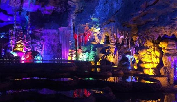 房县野人洞是典型的喀斯特地貌,这里面是天然的石灰熔岩动动力的景色也非常美在悲伤,迷幻的灯光让这里看上去极为壮观。