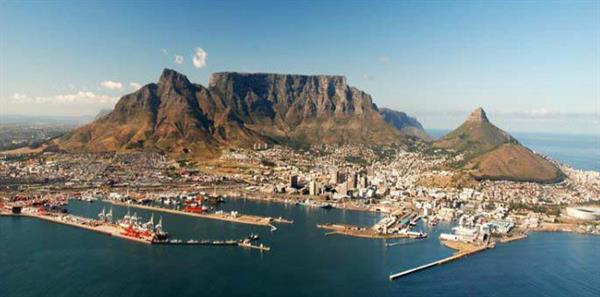 桌山的海拔超过了一千米,山顶是非常平的游客可以在地面上乘坐缆车,登山游览。几座不同的山峰连在一起,形成了独特的圆形。