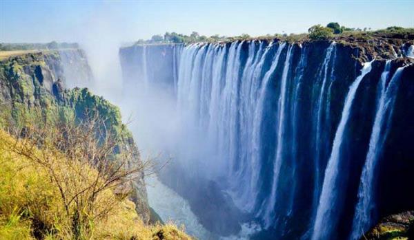 维多利亚瀑布在津巴布韦和赞比亚的边界上。这是非洲非常壮观的一个瀑布,宽度有1700米深度108米,是尼亚加拉大瀑布的两倍。
