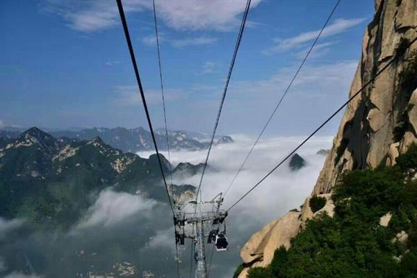 华山索道是为了方便游客沿着华山的小道线路修建而成的索道,游客可以乘坐索道直达山峰,能够看到不一样的华山美景。