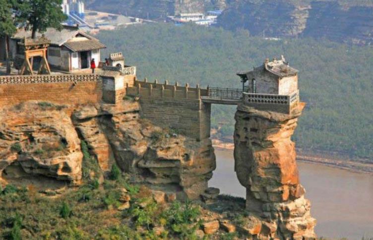 香炉寺的地势十分险峻,站在栈桥上能够让你体验的无比惊险的感觉,低头俯瞰,能够看到滔滔的黄河流水。