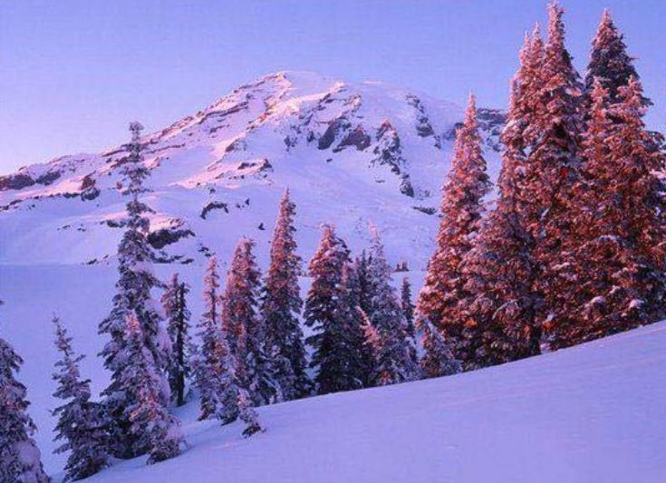 雷尼尔山天堂游侠站,常年积雪不化,每年的降雪量达到17米深,位置在美国华盛顿,这里也是世界上最雄伟的山岭之一。