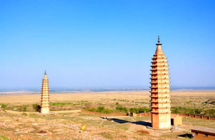 这是一两座分别出来在东西两边的塔,高度比较相似,是密詹式砖塔,整座塔集合了,绘画和雕刻艺术巧妙的结合在一起圣贺兰山下的瑰宝。
