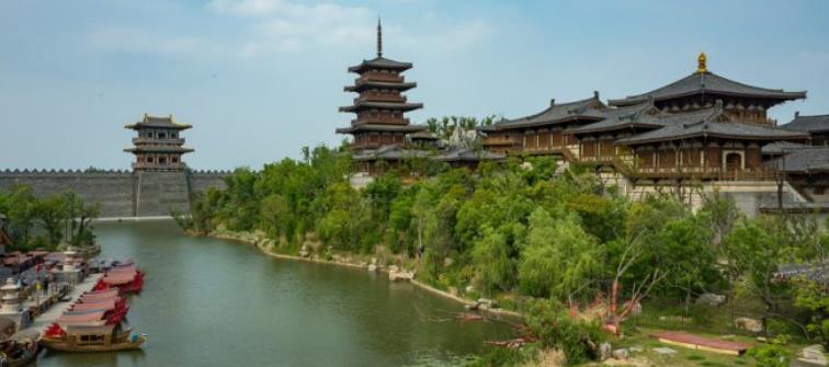 襄阳唐城是武汉新修建的仿唐朝时期的建筑,景区内有着古城墙,城池,还有内陆湖,到了晚上的时候还有漂亮的灯光表演。
