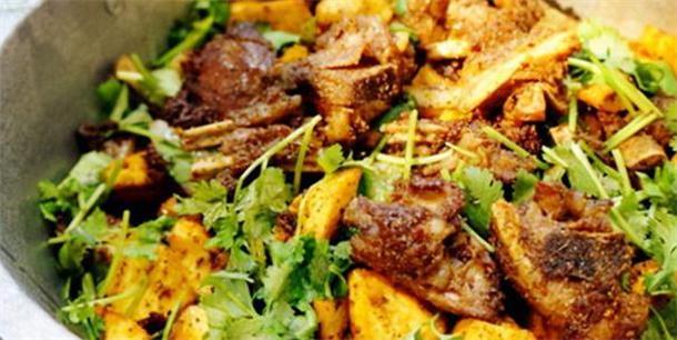炕锅是当地的一种烹饪工具,制作出来的羊排别有一番风味,配上洋葱,胡萝卜,土豆口感十分丰富,吃一次就忘不了的味道。