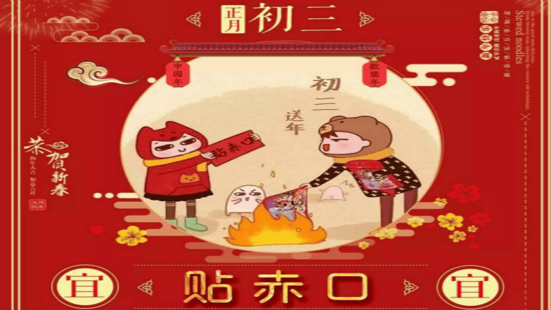 初三猪日,也叫赤狗日。这一天大家不会相互走动,可以将前几天积累的垃圾清扫干净,民间也叫扫穷鬼。