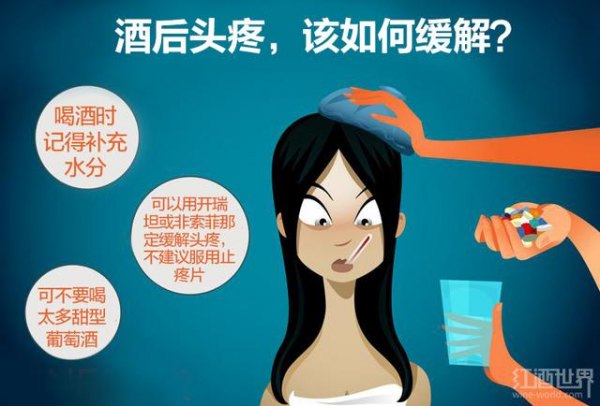 如果几乎每次喝酒,尤其是红葡萄酒,都会感到头疼,那很可能是由酒中的组织胺引起的。在这种情况下,当感到头疼开始来临时,吃点开瑞坦或非索非那定这类抗过敏的药就可以了。