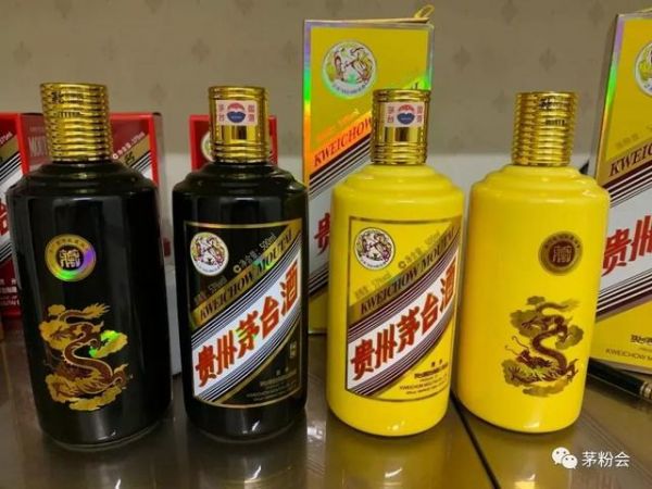 造型和生肖酒相似,瓶身背后印有游龙,是为数不多的龙元素茅台酒。其中黑瓶酒质为陈酿,口感更好。