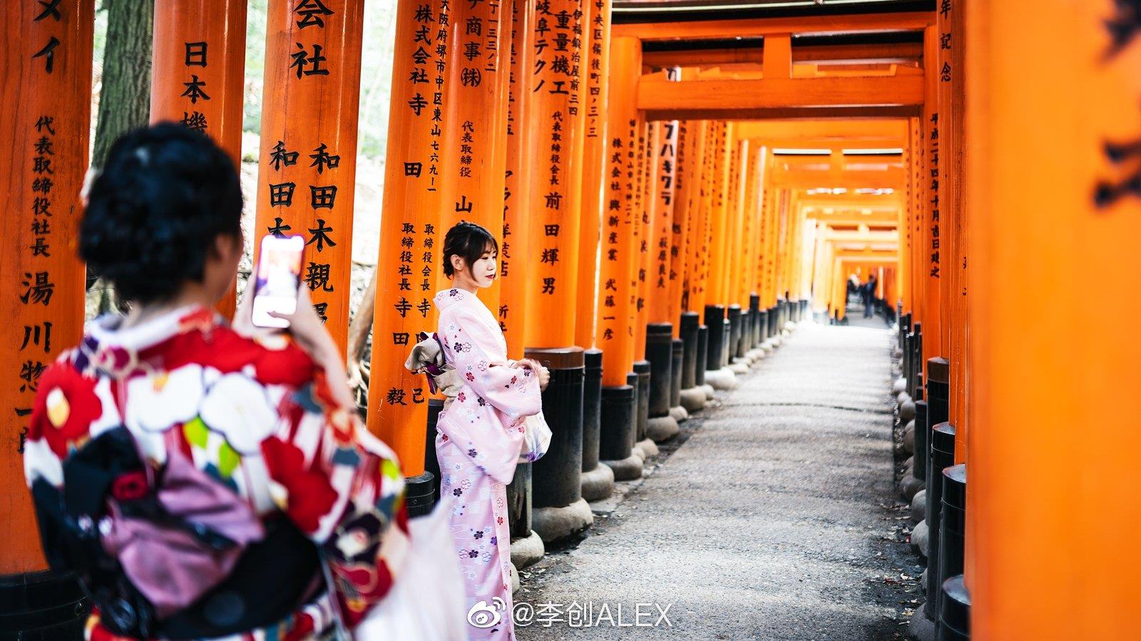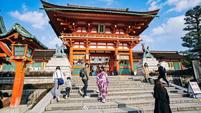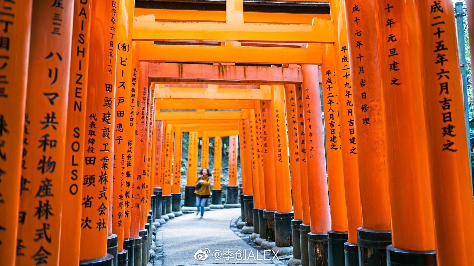 电影《艺伎回忆录》中,12岁的小千代欢快的跑过朱红色的千本鸟居,去神社许愿,从此展开了她这传奇的一生,这一情节成为了多少人对伏见稻荷大社的第一印象。?这里是整个日本稻荷神社的总社,京都最古老的神社之一,据说这里求财非常灵验,自公元711年神明镇座以来,长达1300年间,人们到此祈求五谷丰登,生意兴隆等。?在神社内随处可见狐狸雕塑,这里的狐狸同奈良的鹿一样,被视为神明的使者,世世代代守护着稻荷神,保佑人民风调雨顺。⛩?作为伏见稻荷大社以及京都的代表建筑,总共约一万座的鸟居从山脚一直绵延至稻荷神山的山顶。?朱红色代表着能够抵御一切邪魔的力量,这里的鸟居多为个人或者企业捐赠,鸟居的背面雕刻着捐赠者的姓名以及捐赠日期,自江户时代起,捐赠者到此祈求财富,心愿达成之后便回来还愿,久而久之鸟居越来越多,最终便形成了今日的奇景。?从山脚到山顶,来回需要花费大概2至3小时的时间,想要拍摄到没有人的鸟居那就需要赶早了,最好在早上8点钟之前到达这里,如果来晚了那就努力的往山上爬吧,越往山上走人越少。?开放时间:24小时全天开放?门票:免费?交通:乘坐京阪本线至伏见稻荷站,步行约5分钟。摄影:@李创ALEX ( photo by 索尼a7m3 )@微相册