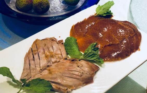 金宝街上的1949全鸭季餐厅,有"大隐隐于市"的风骨,进门之后处处有惊喜,精致得如同深闺之中的名媛。全鸭季的鸭子选用英国樱桃谷与北京白鸭杂交品种,填鸭式喂养38-42天,保证肉质细嫩。师傅片鸭之前,店员会先敲一下锣,仪式感十足。鸭子采用拉条的方法片成两盘,皮肉分离,肉质嫩而不干。荷叶饼是自家当天擀制的,薄而透,柔软却有韧性。鸭酱以海鲜酱为主,另加十几种中草药秘制,这个味道北京独一份。