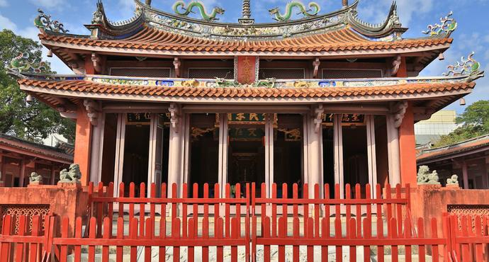 台南孔庙又称作文庙,是全台湾建成的第一座文庙,也是郑成功收复台湾后在台湾建立的第一所高等学府,清朝初期一度是全台童生入学之所,因此亦称全台首学。有“全台首学”之称。孔庙建筑庄严宏伟,格局完整,清幽肃穆,每到孔子诞辰之日,台南市政府都会按照古制在这里举行祭孔庆典,万人朝拜,场面热闹非凡。