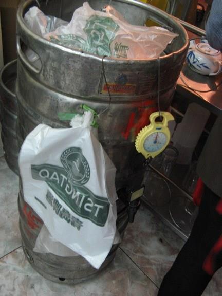 青岛袋装啤酒就是青岛散啤,也叫做扎啤。青岛散啤是用大不锈钢酒桶出厂,都是当天生产的并且是没有经过高温杀菌的新鲜啤酒,这样的啤酒喝起来不会像瓶装啤酒那么冲,反而还会散发出新鲜的啤酒花香气。因其保质期短,口感好,不能经长途运输到太远的地方。炎炎夏日,下班时间,经常可以见到提着散啤的青岛人,空气里都是新鲜的啤酒花味儿。