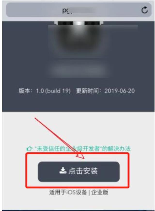 打开苹果手机主界面,打开“safari浏览器”,进入一个外部软件的下载网址,选择“点击安装”。