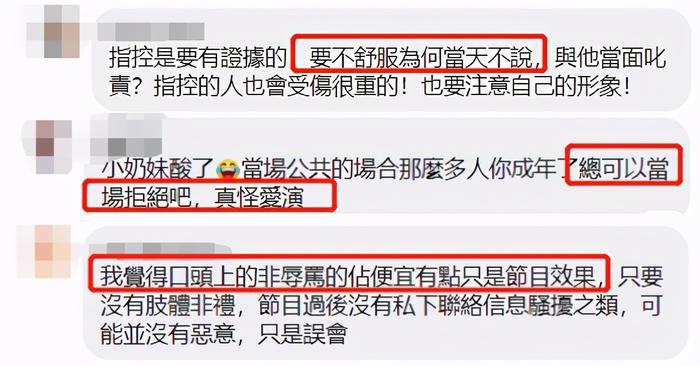 由于郑家纯一直是口头阐述,并未有实质性的证据,大家首先就怀疑她是在炒作,而在翁立友方提出可以诉讼时,郑家纯也一直没有选择公诉,不少网友更是指责她为什么没有一开始就站出来,为什么不制止对方,甚至被说道这就是艺人的工作,只是节目效果而已。