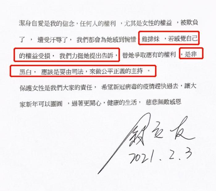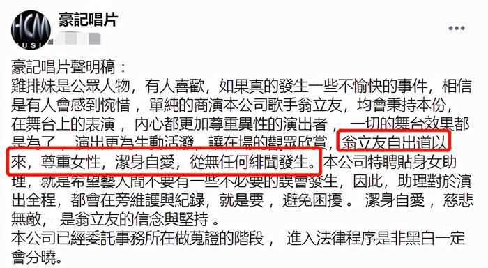 紧接着,翁立友方又立刻发表声明,表示如果郑家纯真的觉得自己受到了伤害,可以选择诉讼,所有的一切司法都会给出一个结果。