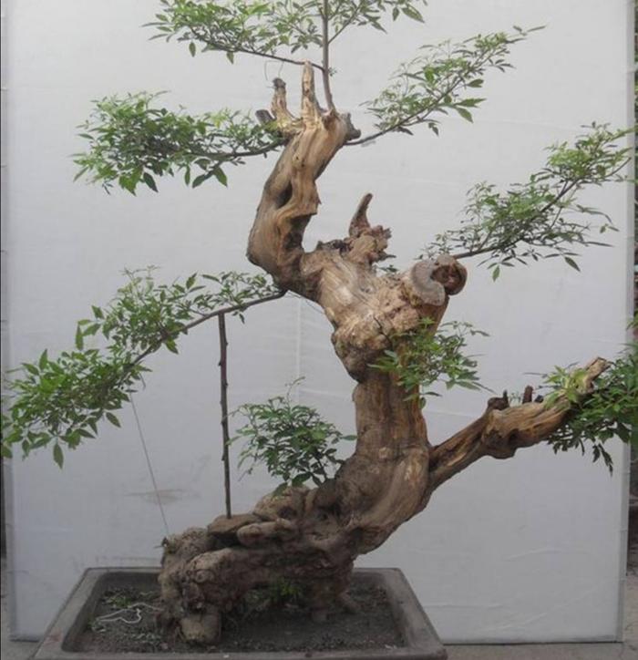 在蟠扎枝干时,尽量在还未完全木质化时,对枝条进行蟠扎造型,因为黄荆的木质化后的枝条较脆,造型时容易折断。