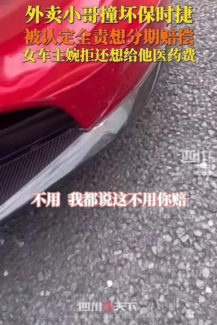 广东深圳,一个外卖小哥在送餐途中,不慎撞上了一辆红色的保时捷。