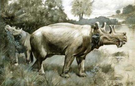 尤因它兽,在恐龙灭绝以后,第一种出现在陆地之中的巨型哺乳动物。足迹几乎遍布当时的各个大陆之中,外型稀奇古怪,头部长有多达6对以上的犄角,看起来尤为面目狰狞,但尤因它兽却是温和的植食性生物。