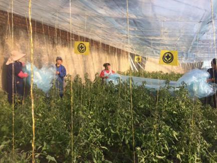 棚室内空气湿度大,易诱发病害,特别是当棚室内温度处于15℃~25℃时,空气相对湿度一定要控制在90%以下。应在中午温度高时短时间通风排湿,也可在种植行间铺设干秸秆,降低棚内湿度。