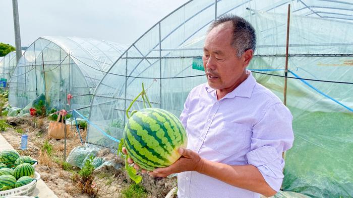 有人守着老手艺,也有人发展新产业。在王村村,“瓜王”胡守兴的名号早已家喻户晓。今年6月,第四届江苏“好西(甜)瓜”品鉴推介活动举行,种瓜近40年的胡守兴带着他的西甜瓜参评,一举摘得“瓜王”桂冠。王村村土壤含沙量少、水分足,适宜瓜果蔬菜种植。近年来,村内打造了近万亩果蔬园,初步形成瓜果品牌集聚效应,同时与科研院所建立合作,引进新品种,促进村民增收致富。