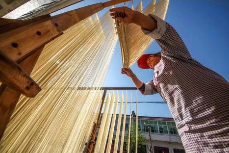 盘条、绕面、分杆、拉长、晾晒、盘面包装,这是浦口区星甸街道王村村村民雍定明制作传统手工挂面的步骤。“咱这手工面可是浦口区级非物质文化遗产,拥有上百年历史。”雍定明自豪地说。