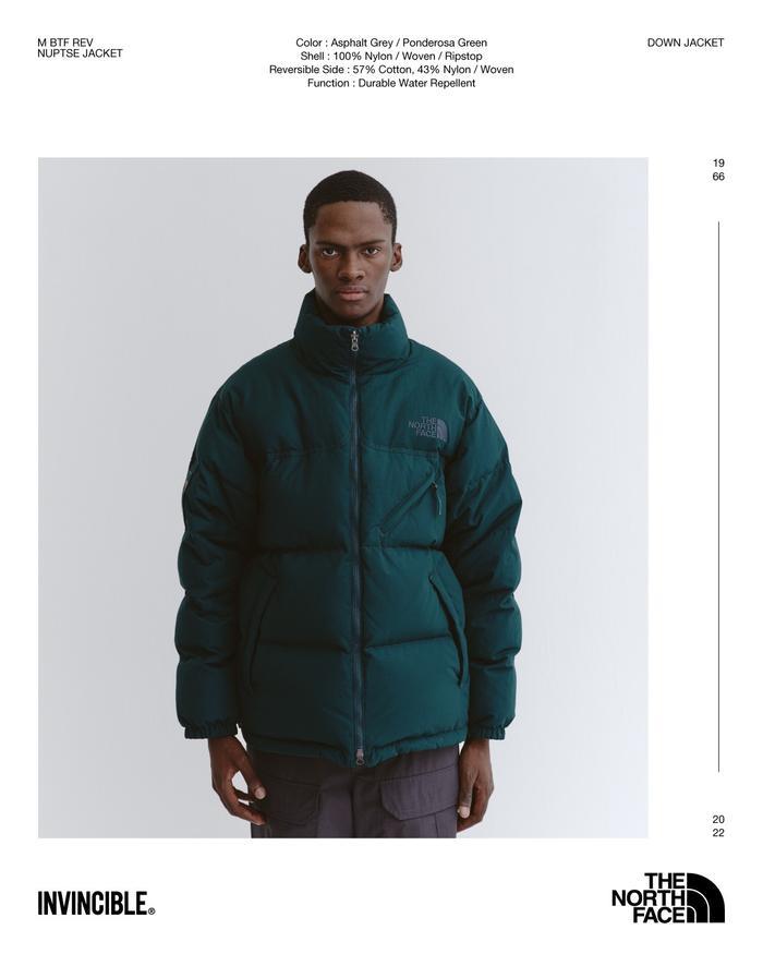 本次以「TIMETRAVEL」时空重溯为主题,INVINCIBLE与知名品牌创意总监兼设计师ShinsukeNakada(中田慎介)共同设计打造,带来Nuptse双面羽绒服、二合一Denali抓绒外套。