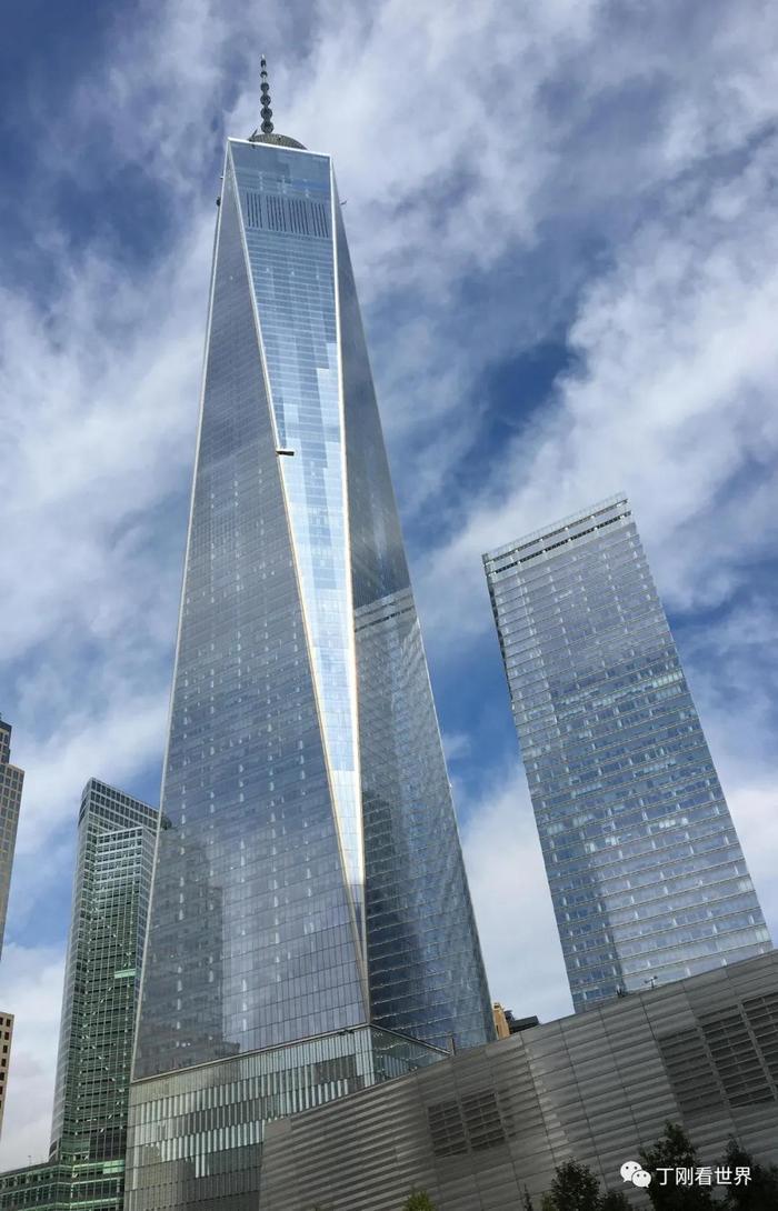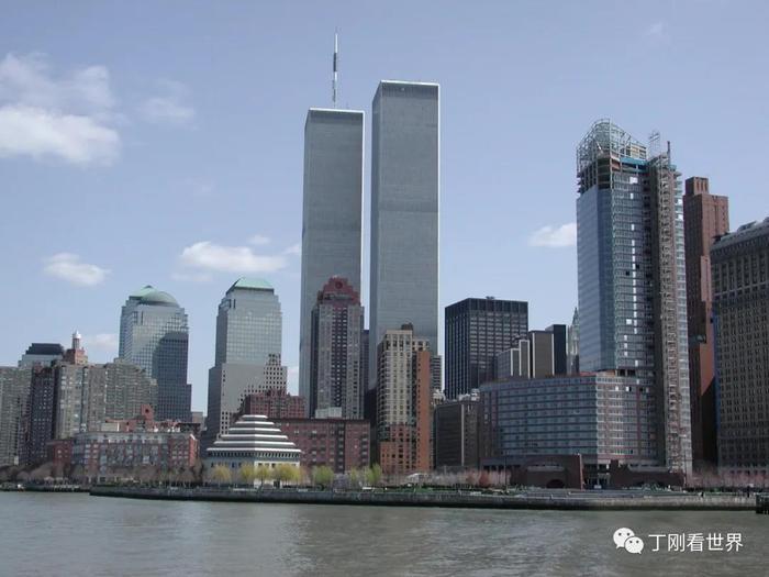 从外形看,两幢塔楼并没有什么奇特之处,它们像长长的积木笔直地肩并肩地耸立着。但是,登上塔楼的平台,整个曼哈顿的壮观景色便会出现在你的眼前。那蔚蓝色海湾中的自由女神像,那高耸入云的帝国大厦,那横跨东河的大桥……只有站在这里,你才能体会到“高度决定一切”对这个欲望之都的意味。世贸大厦双子塔。 丁刚摄于911前