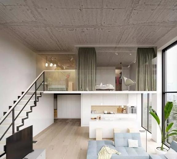 顶层最常见的一种设计就是复式设计,在顶层上设计成小两层的复式楼房。如果家里人口比较多,或者跟长辈一起居住,其实复式设计就非常值得考虑了。
