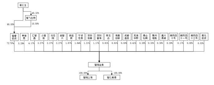 智翔金泰前身为成立于2015年10月的智翔有限公司,2021年智翔有限公司整体变更为股份有限公司。公司目前实际控制人为蒋仁生,其通过智睿投资直接持有智翔金泰72.73%的股份。