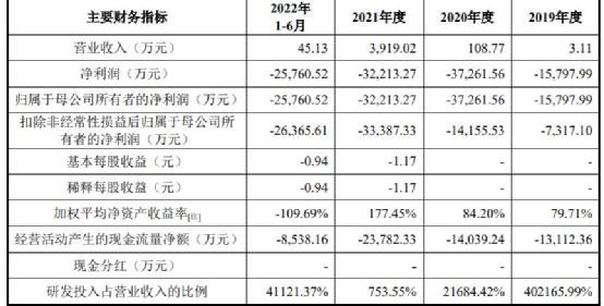 招股书显示,2019年、2020年、2021年、2022年1-6月,智翔金泰的营业收入分别为3.11万元、108.77万元、3,919.02万元、45.13万元;