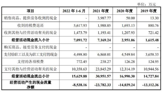 经营活动产生的现金流量净额分别为-13,112.36万元、-14,039.24万元、-23,782.33万元、-8,538.16万元;