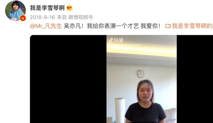 但她被吴亦凡看到并回复了,然后就火了。李雪琴喜欢吴亦凡很多年,被吴亦凡回复后,她的喜爱更甚了。