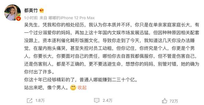 都美竹再发千字长文,控诉吴亦凡的七大罪证,背地里说归国四子的坏话,还有生理缺陷等等。