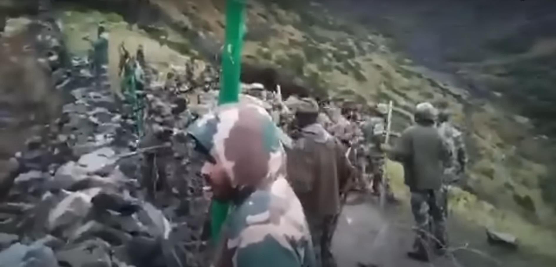 最近网上也爆出了一些疑似当天冲突的视频,在图中我们可以看到,印军处于高地,占据有利地形,并且有铁栏和围墙作掩护。据此可以判断,一定是印军又没有遵守约定,越过界限偷偷修建哨所,搭建围墙和铁栏。我军发现后,才与印军发生冲突。但因为印军占据有利地形,并有围墙的掩护,我军才选择了暂时撤退。但是这个视频中有几个疑点。