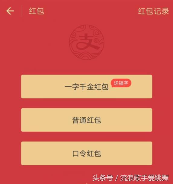 没有的小伙伴也不用担心,打开支付宝红包选项,你也一样会看见“一字千金红包,送福字”字样。