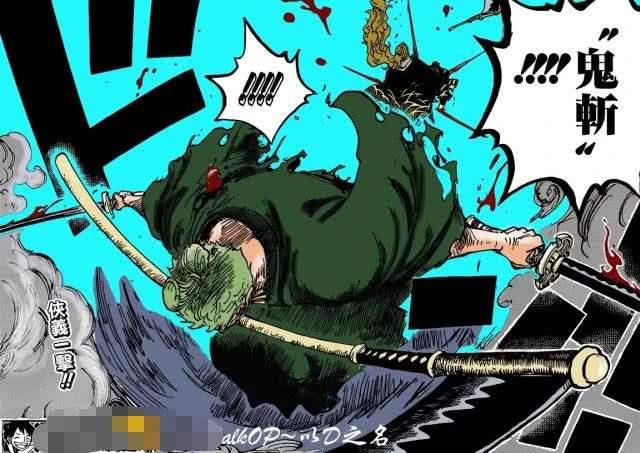 第一招:鬼斩;三把刀像一个工字,威力很强大,随着后期也是在不断的升级,也是索隆经常用的一招!