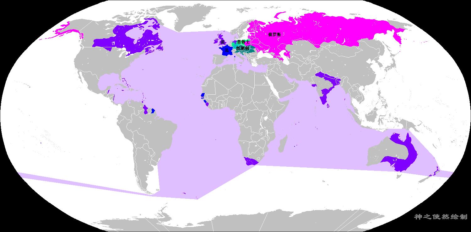 其中,粗体为丧失独立的国家或地区及对应时间,因此可以算成是法国的版图,其他为丧失军事或经济独立性的势力范围。