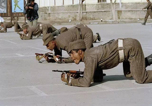 1989年2月8日,作为苏军撤退计划的一部分,阿富汗政府开始训练自己的保卫部队,这些士兵最终会被分配到喀布尔政府核心部门,以提供安全保障。摄影:美联社/Boris
